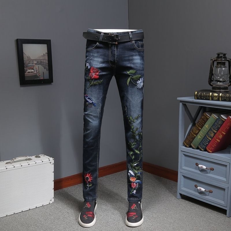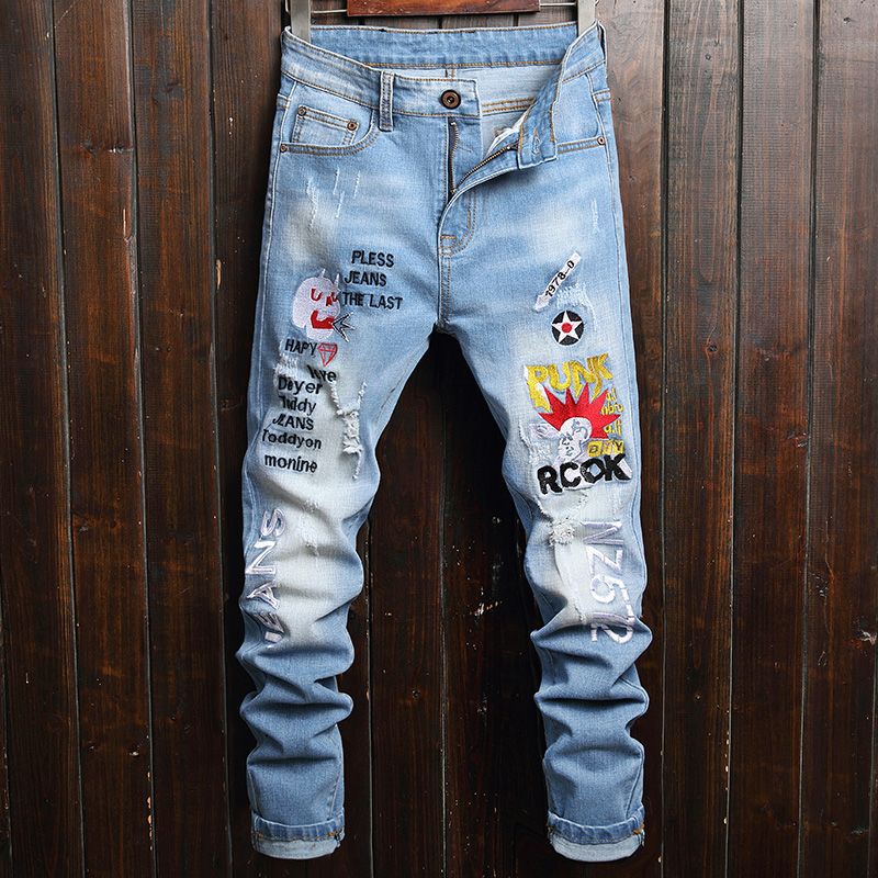 2020 New Fashion Mens Casual Autumn Denim Cotton Straight Ripped