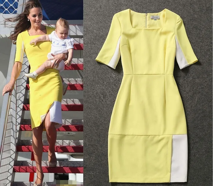 Kate Middleton Print Casual Summer Dress With Sleeves