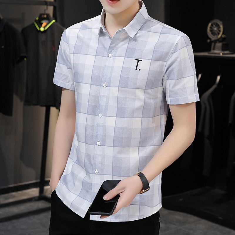 2020 Musim Panas Model Baru Kotak Kotak Kemeja Pria Lengan Pendek Casual Pakaian Pria Inch Kemeja Gaya Korea Membentuk Tubuh Tren Tampan Kemeja Lazada Indonesia