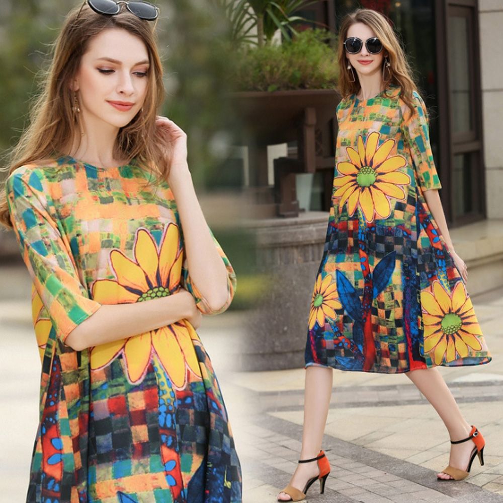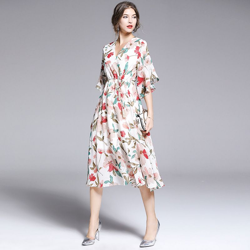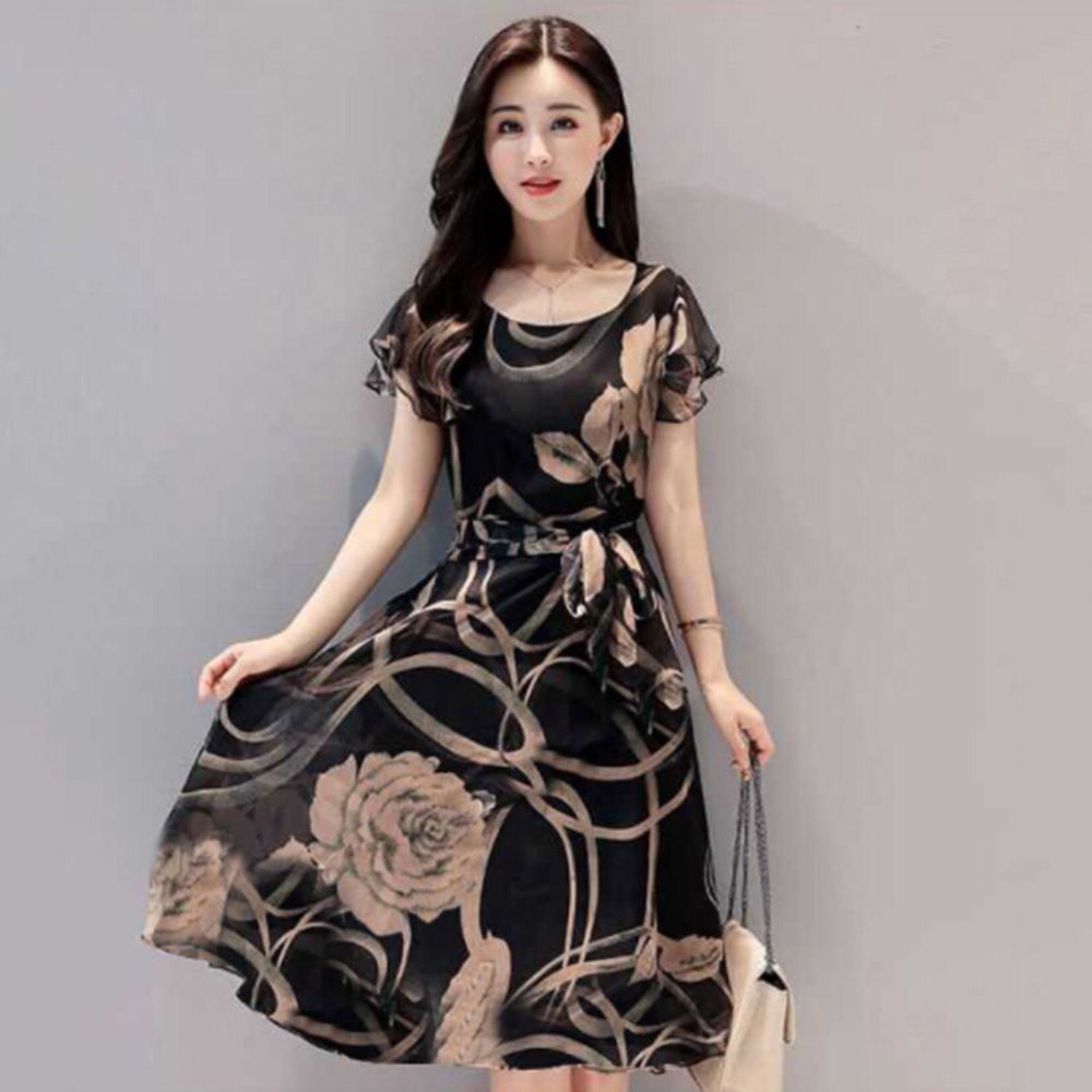 Knee Length Chiffon Dress With Flower Print Fashion Dresses