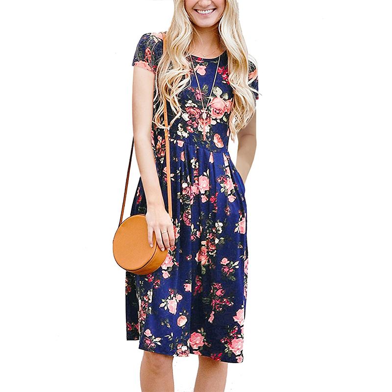 Vintage V Neck Digital Print Floral Summer Dress 3 4 Sleeve