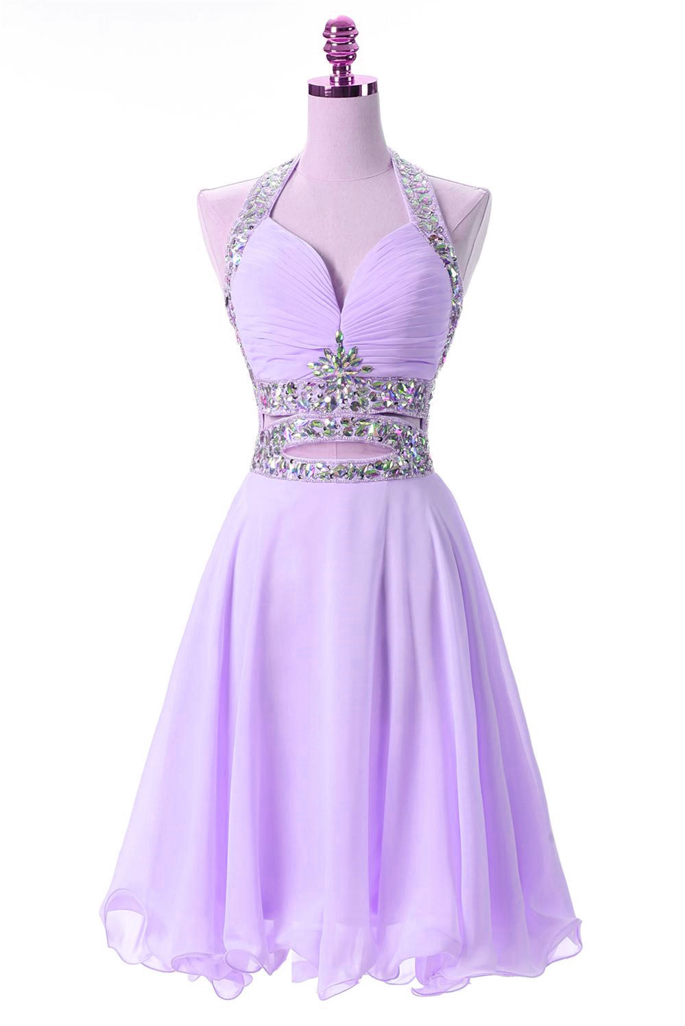 Short Lavender Homecoming Dresses Flower Applique Knee Length Prom