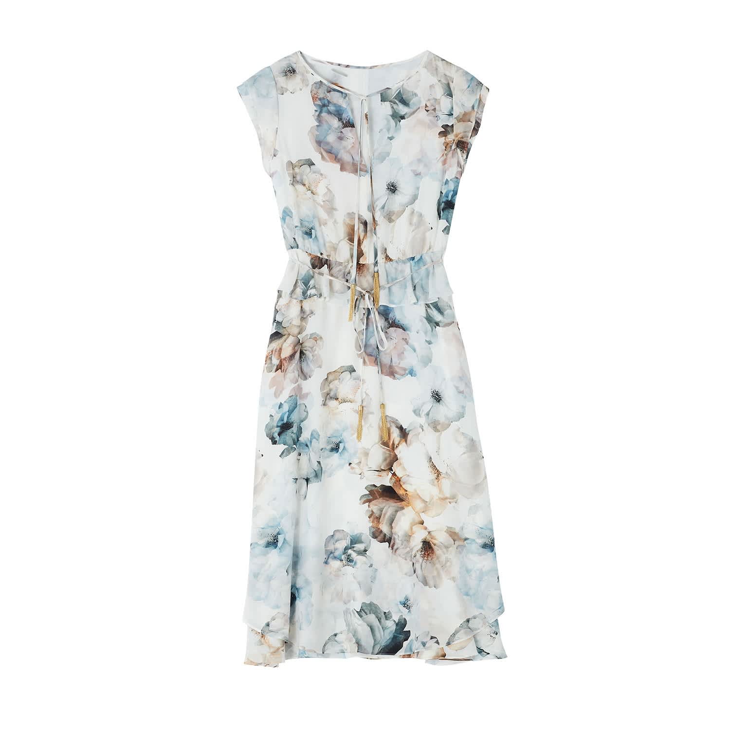 Women Casual Elegant Floral Printed O Neck Short Sleeve Ruffles