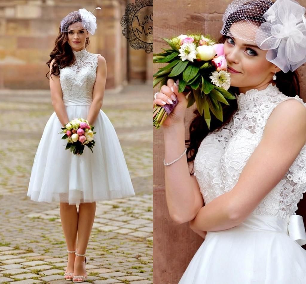Classic Simple Casual Lace Beach Knee Length Wedding Dress With