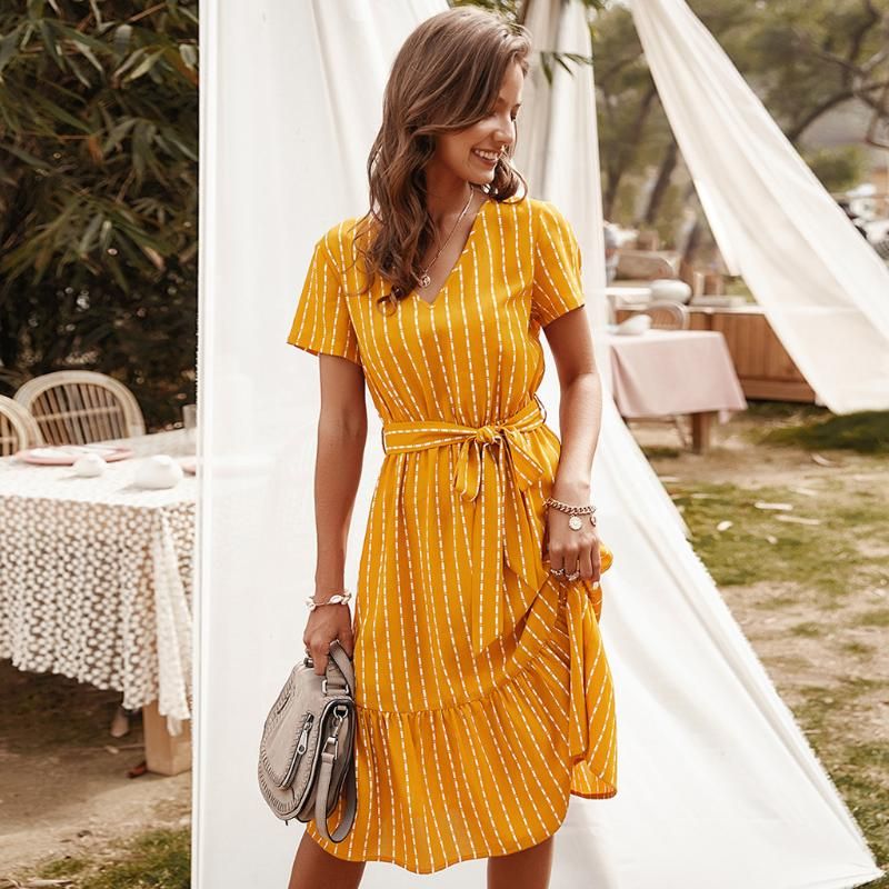 Big Flowers Yellow Knee Length Dress Oversized Casual T Shirt