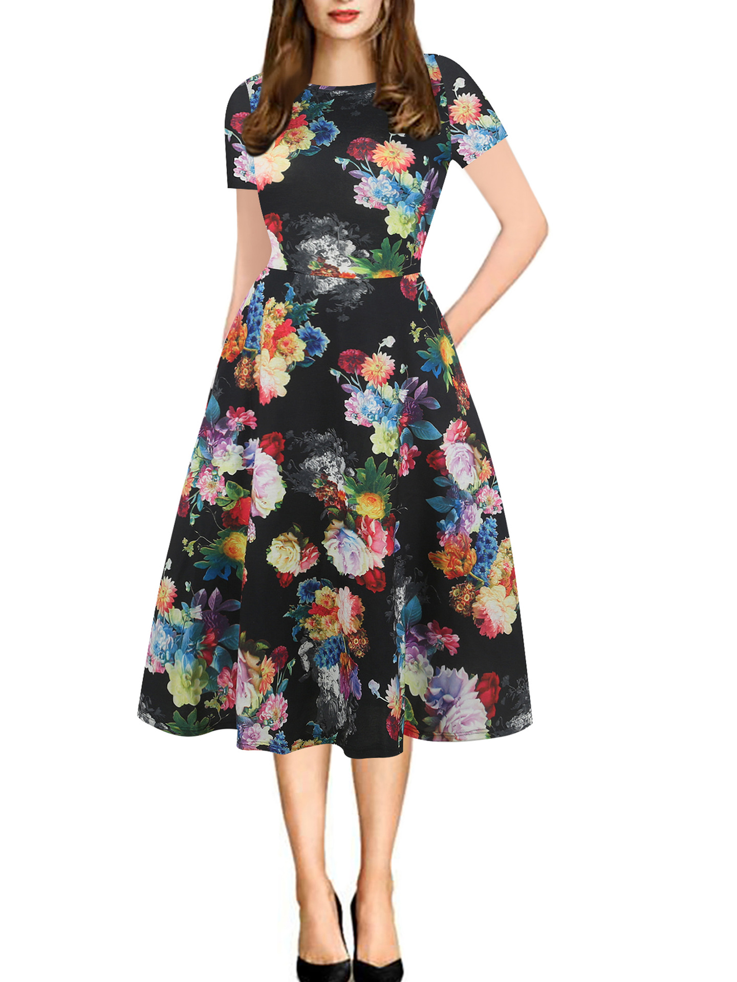 Print Floral Short Sleeves A Line Knee Length Casual Party Boho