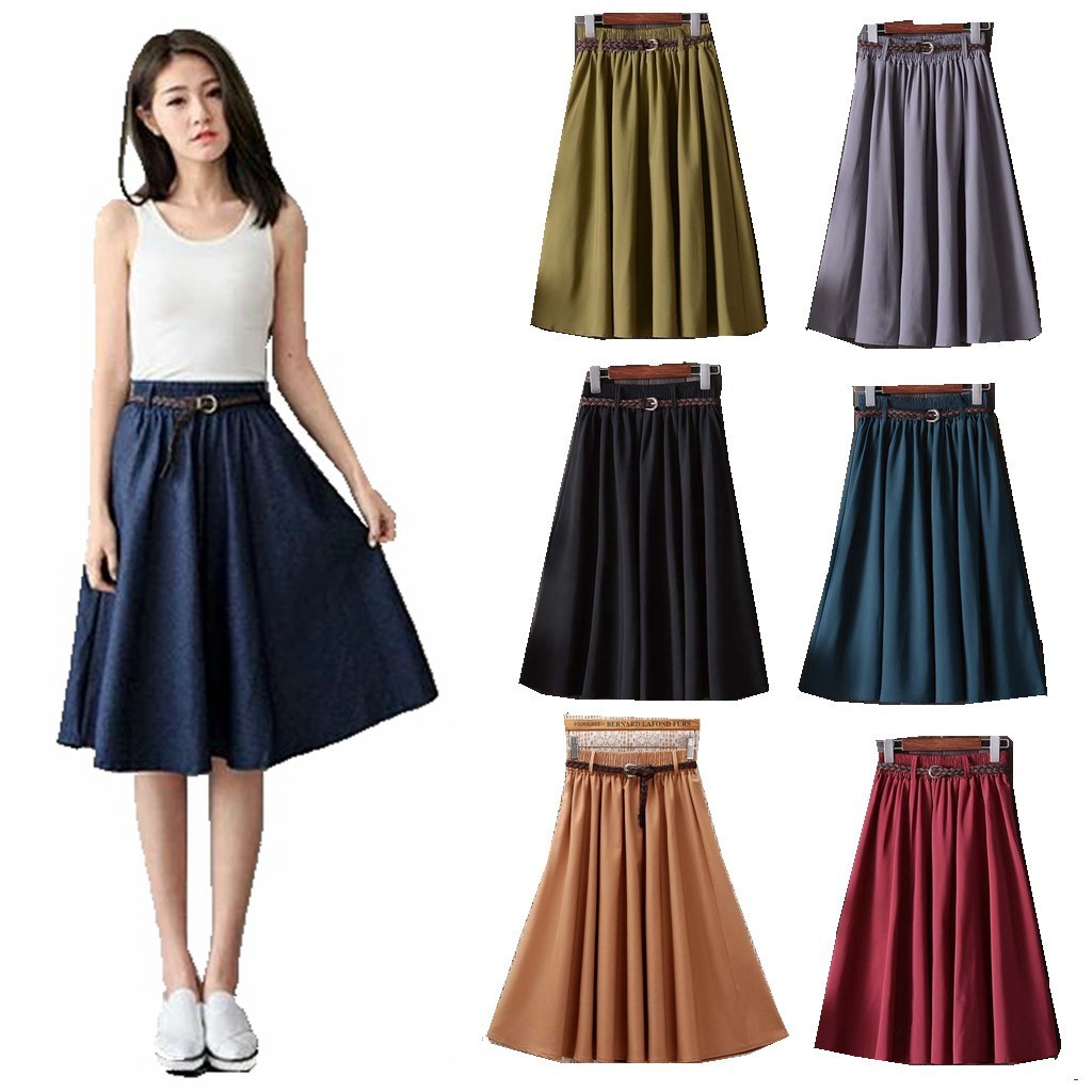 Long Skirt Summer Autumn Casual Waistband 5 Colors Plus Size