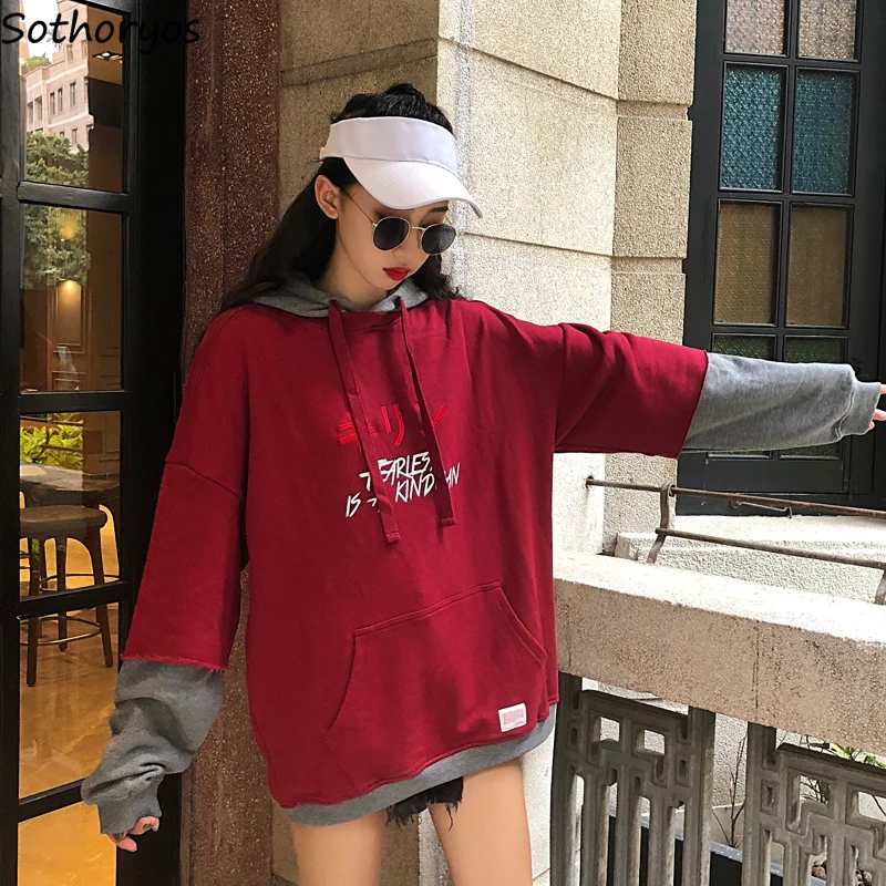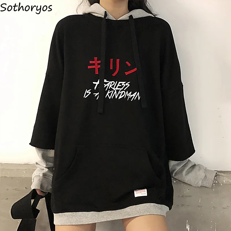 Hoodies Women Fake Two Pieces Loose Chic All Match Oversized Hoodi