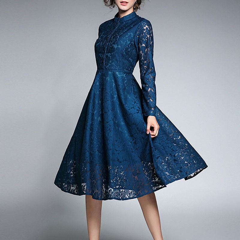 Queenus Women Summer Lace Dress 2017 Elegant Ol Work Dress Hollow