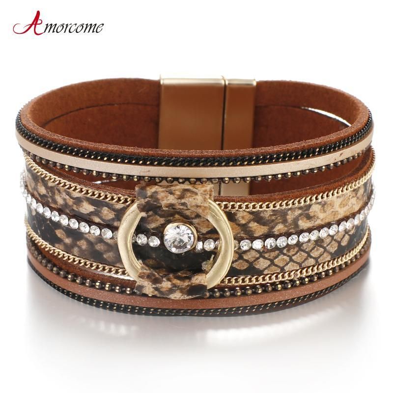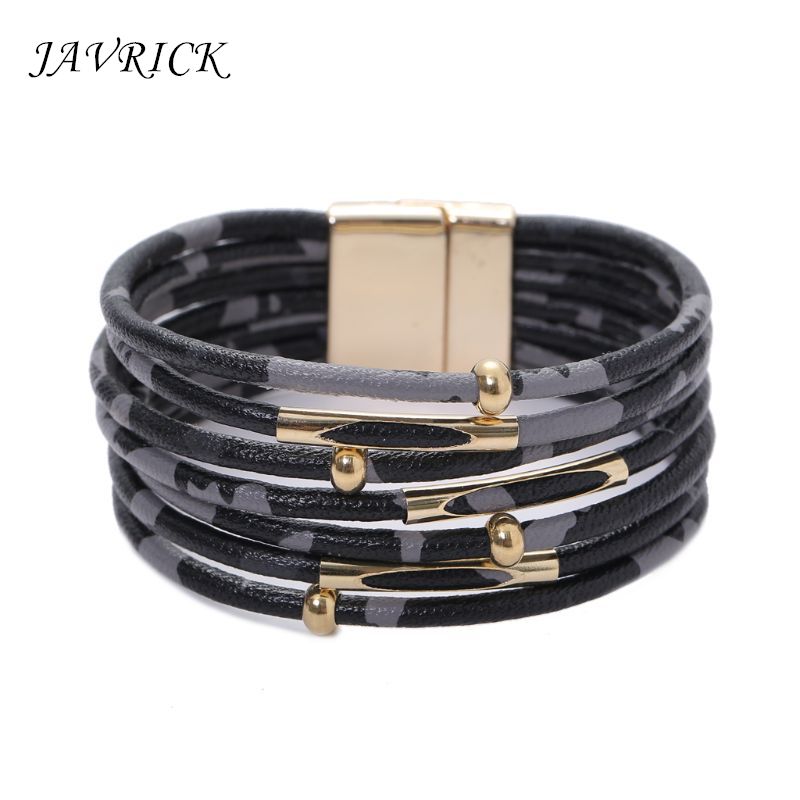 Womens Fashion Wrap Bracelet With Rivets And Magnetic Closure Leaf
