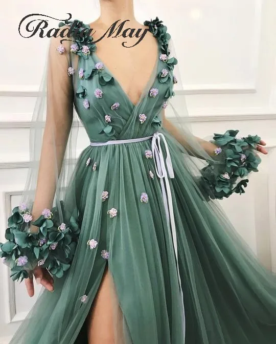 Teal Sexy Slit Prom Dresses 2020 Spaghetti Straps Girls Long Party