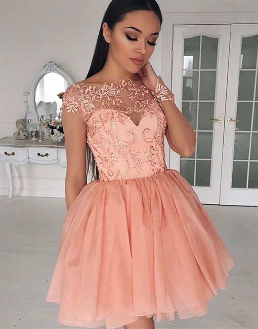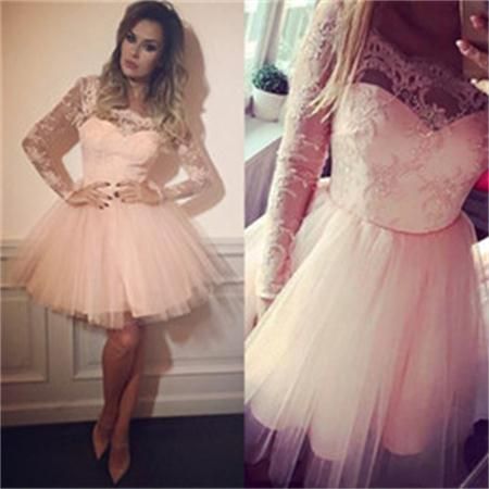 Long Sleeve Ivory Lace Short Homecoming Dresses A Line Cheap Sweet 16 Dresses Sheergirl Com Sheergirl