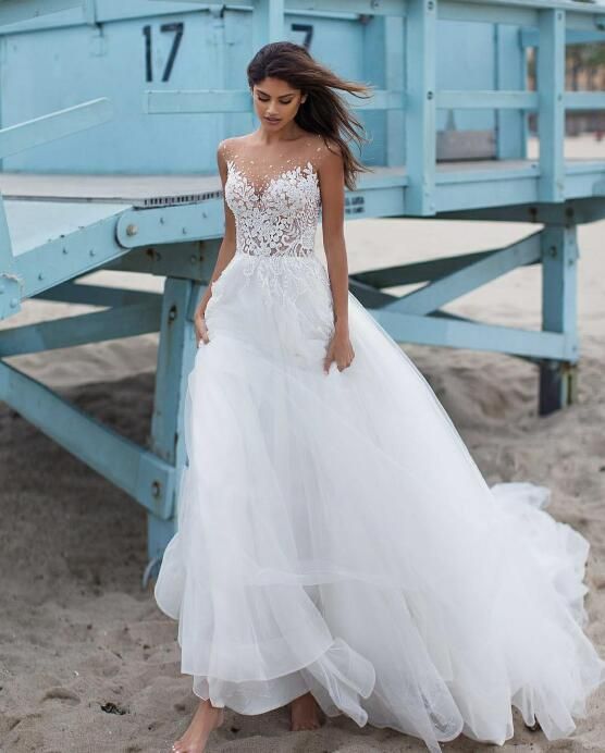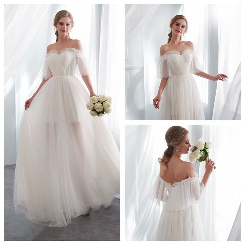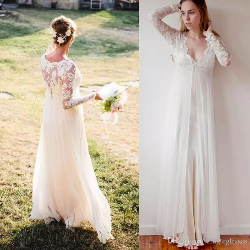 Beach Square Long Sleeve Lace Pleated Maternity Wedding Dress