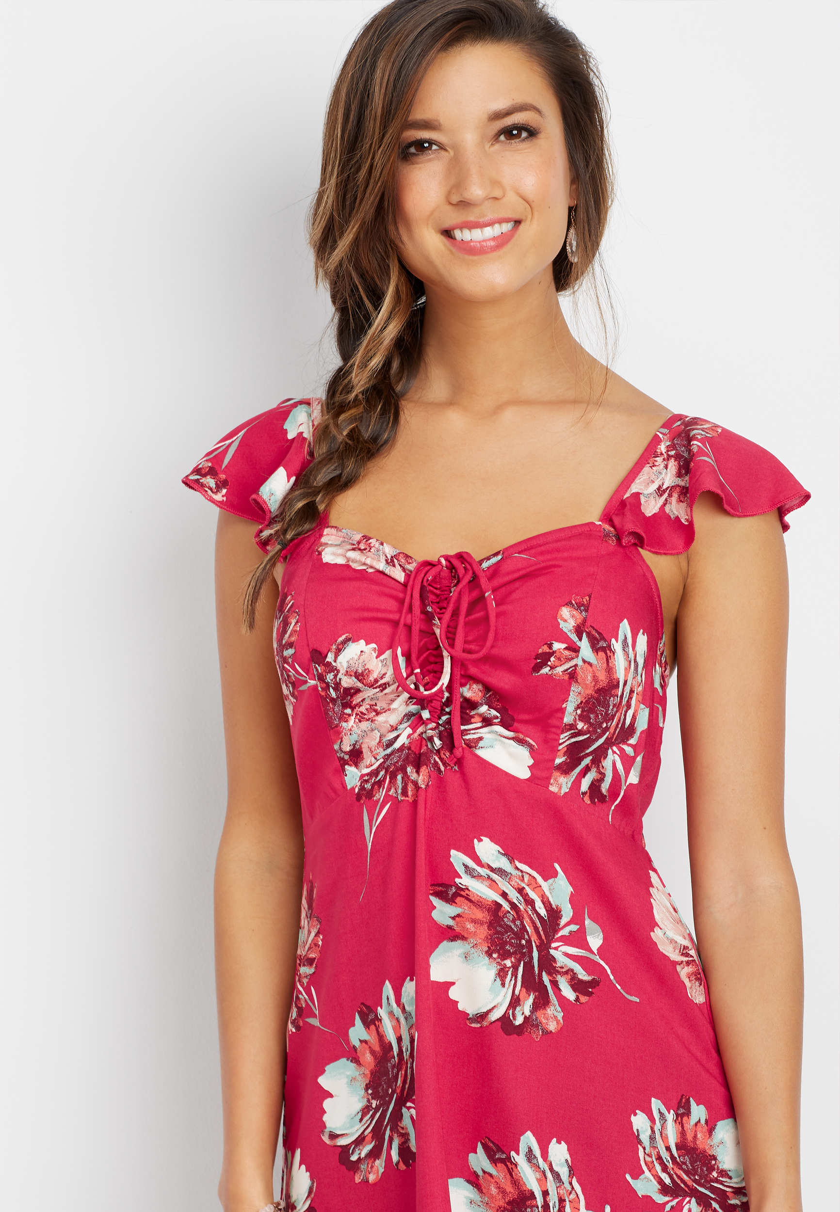 Maurices Women S Textured Chiffon Dress With Flutter Sleeves X Small Fuchsia Flash At Amazon Women S Clothing Store