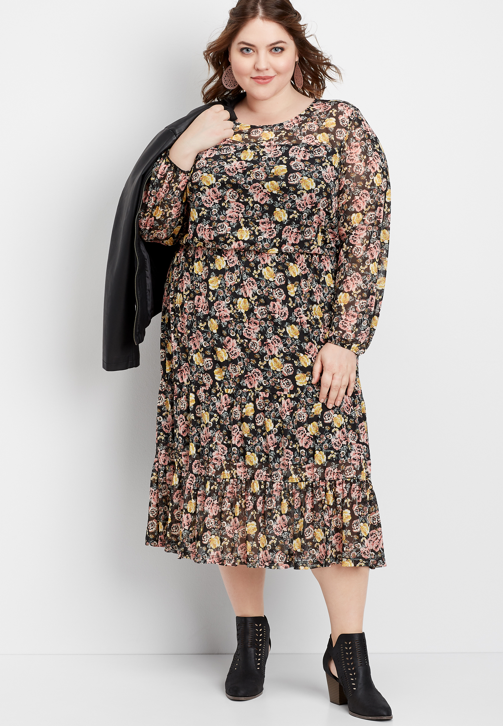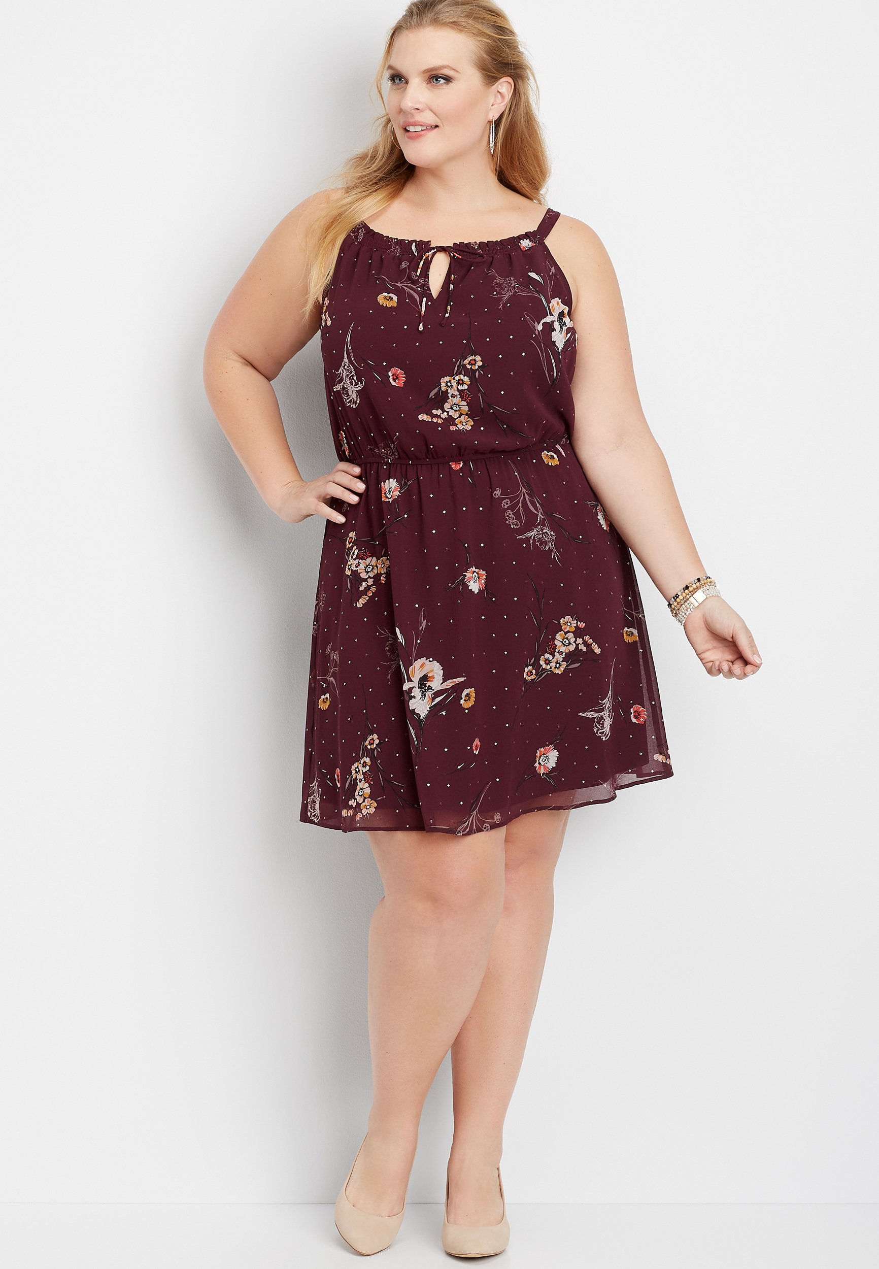 Plus Size Mixed Floral High Neck Swing Dress Maurices