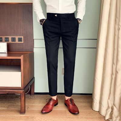 Mens Zipper Mid Waist Stretch Regular Straight Business Casual