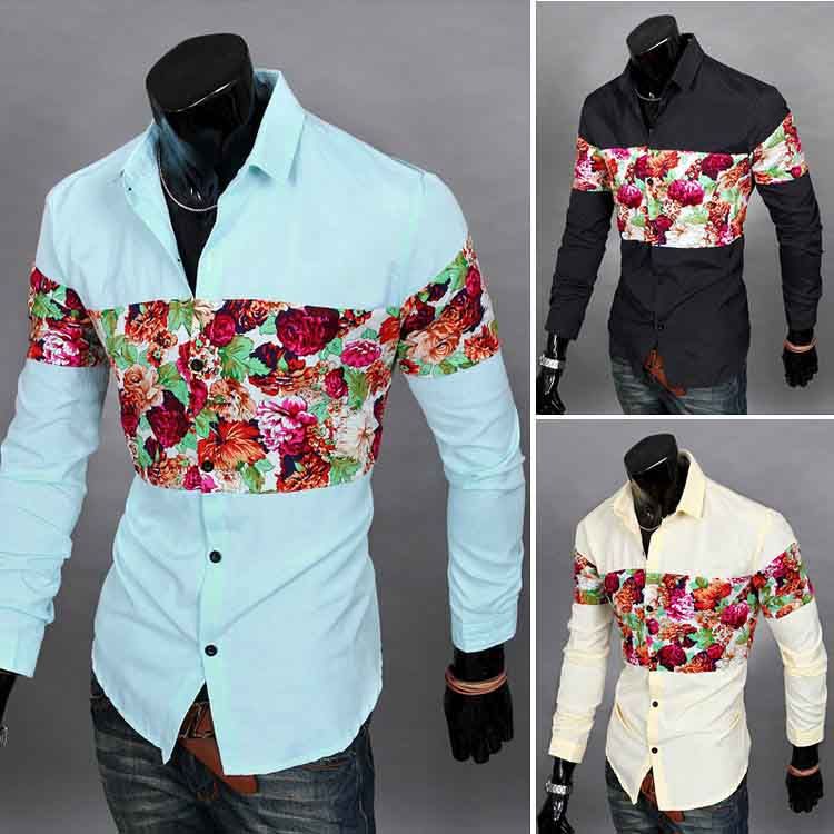 2018 Men S Casual Simple Spell Color Long Sleeves Shirts Light
