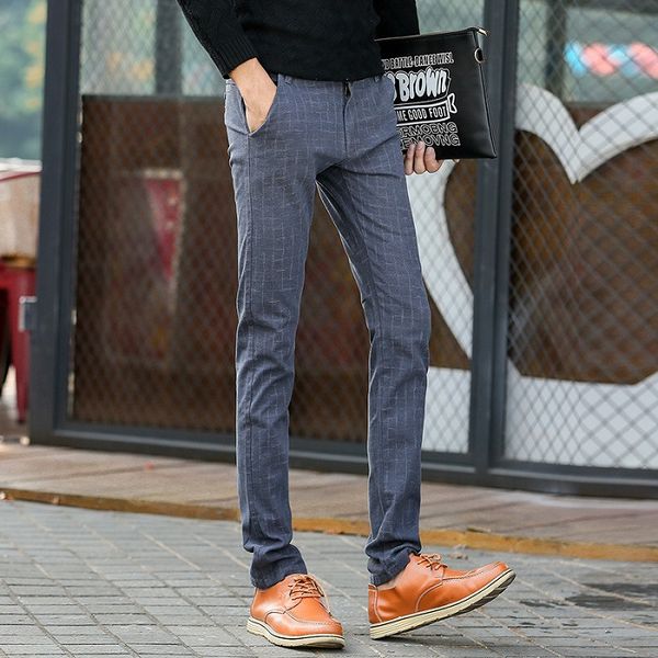 New Fashion Plaid Pattern Slim Fit Men S Casual Cotton Dress Pants