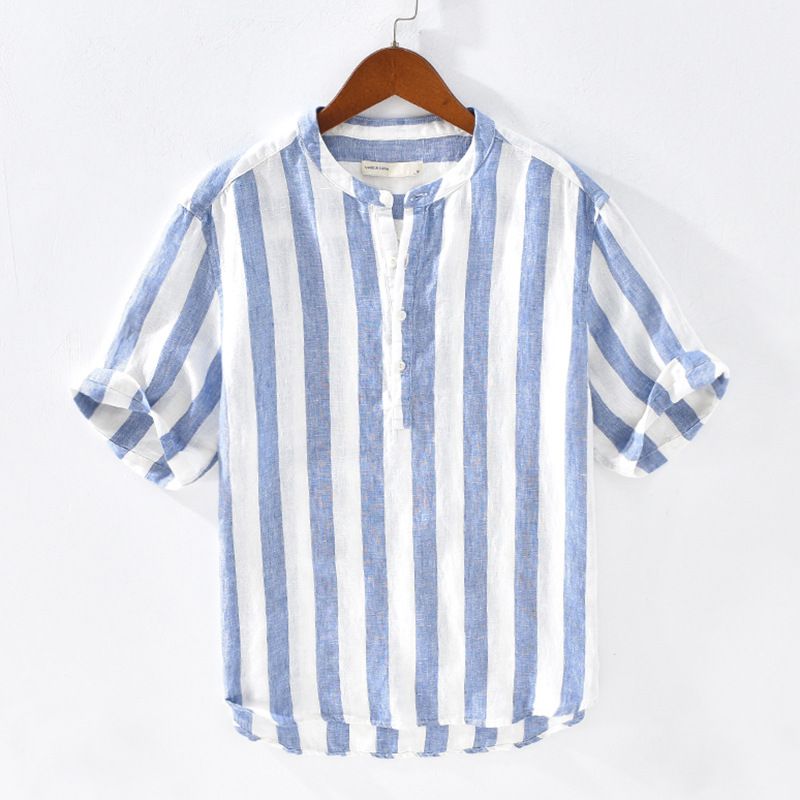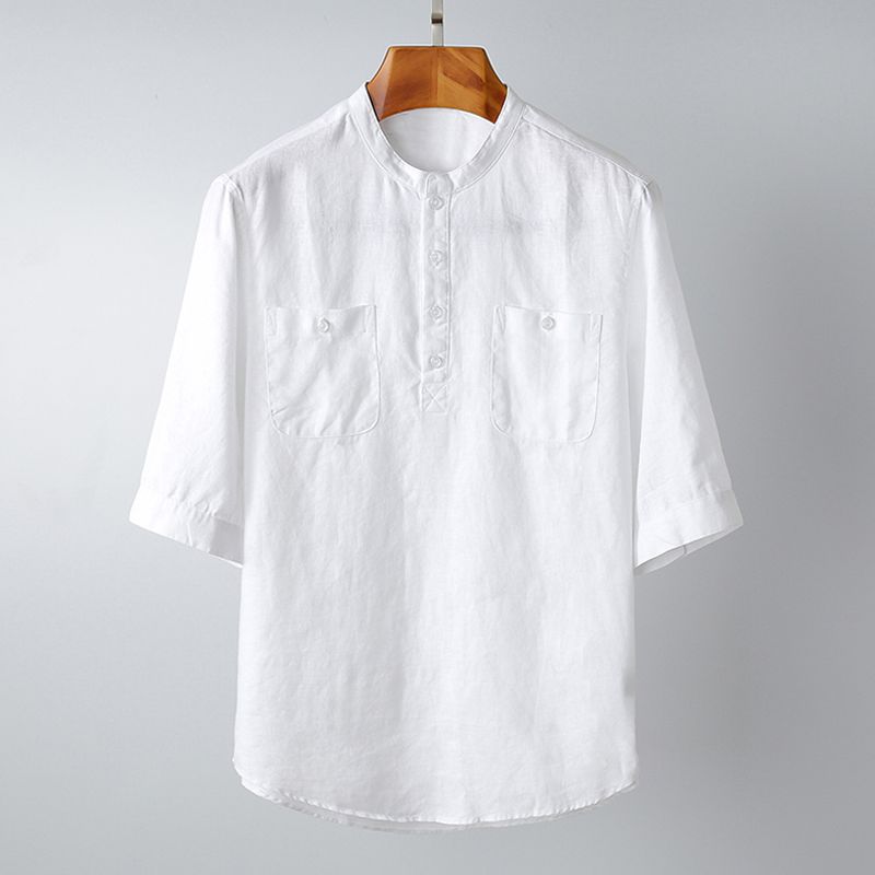2020 100 Linen Short Sleeve Shirts Men 2020 Summer Collarless