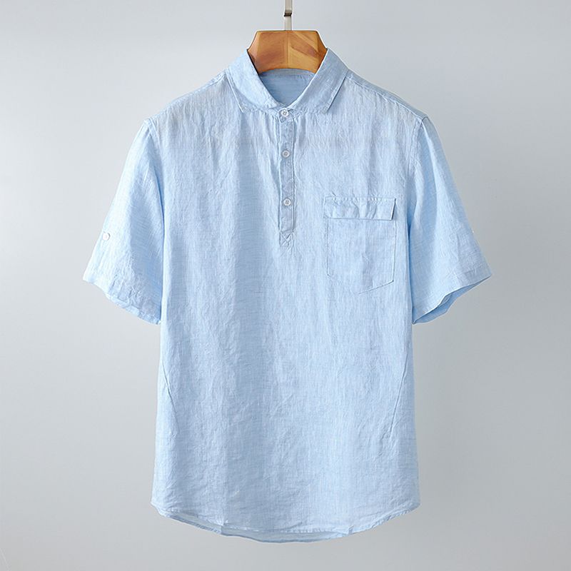 Men S Pullover Linen Short Sleeve Shirt Men S Premium Casual Shirt