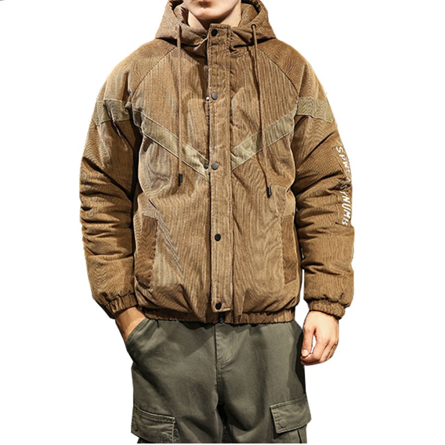 Mens Fall Casual Long Sleeve High Neck Zip Placket Khaki Thick