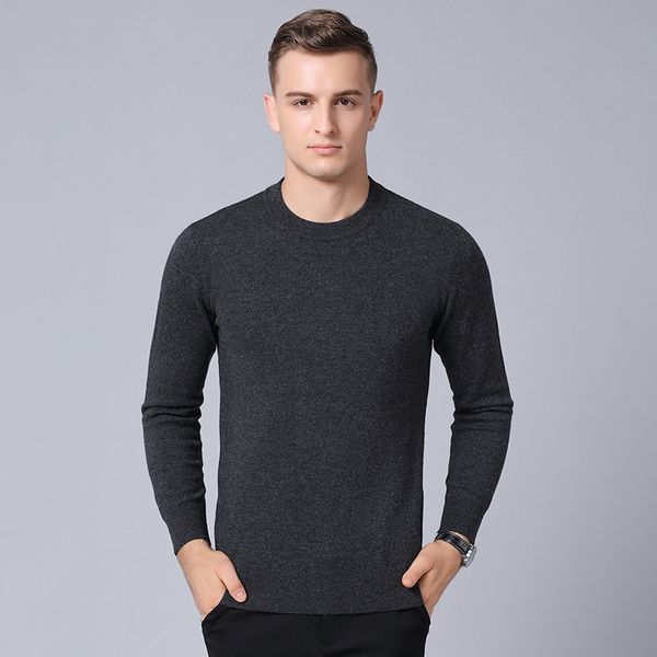 Pure Cashmere Sweater Men Business Winter Gray Sky Blue Khaki