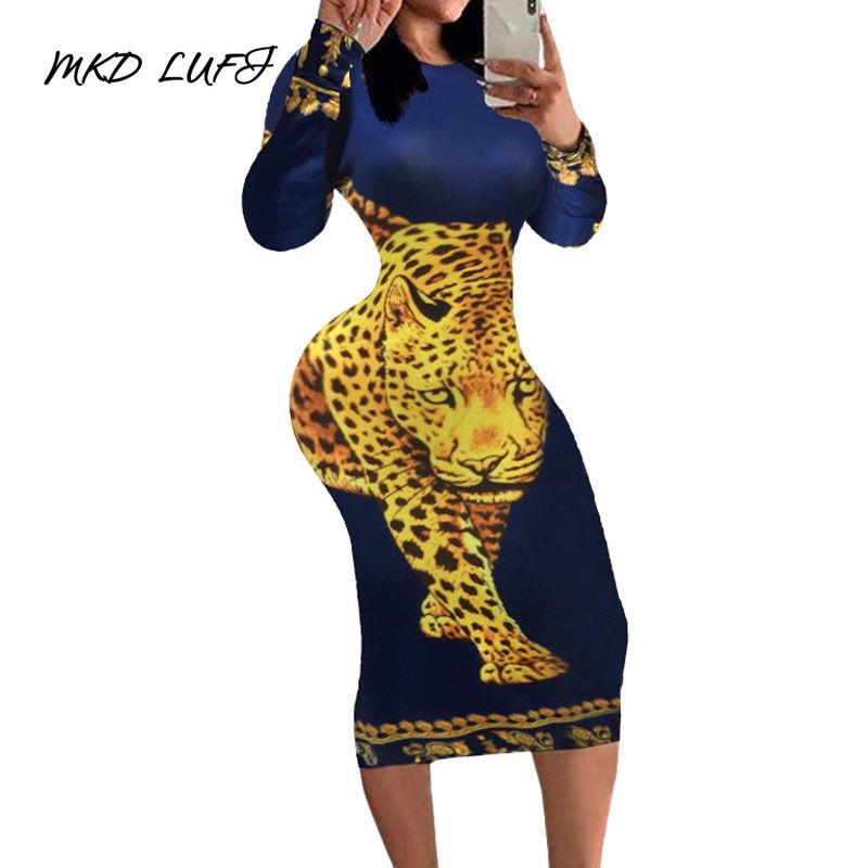 Elegant Mid Calf Autumn Winter Button Hip Sheath Casual Dress
