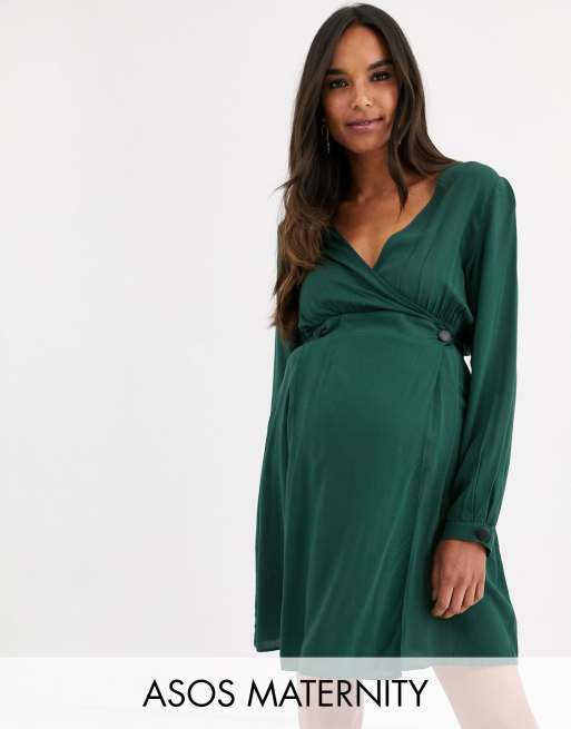Asos Design Maternity Casual Wrap Mini Dress Asos