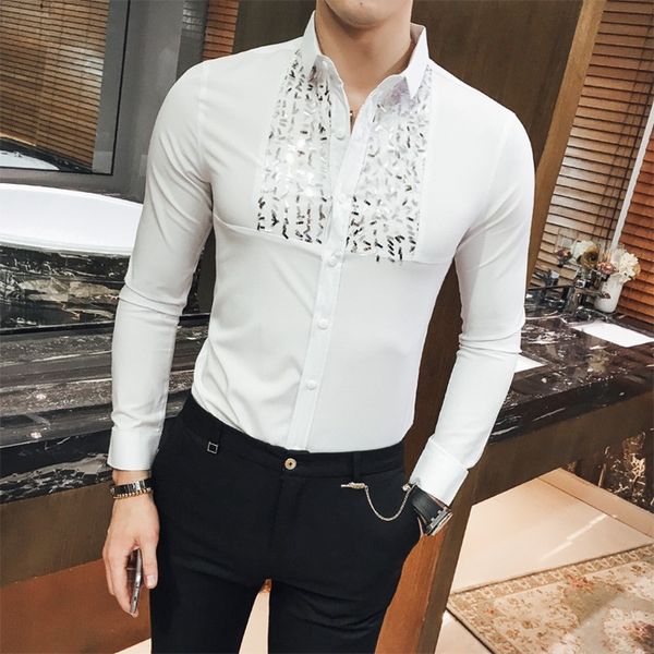 Slim Fit Men Shirt Korean Fashion Paillette Shirt Long Sleeve