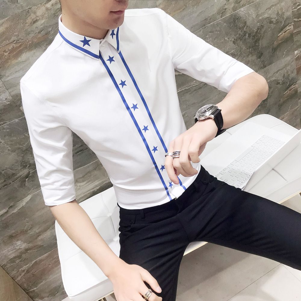 Light Blue Men Shirt Fold Slim Fit Long Sleeve Men S Social Shirts