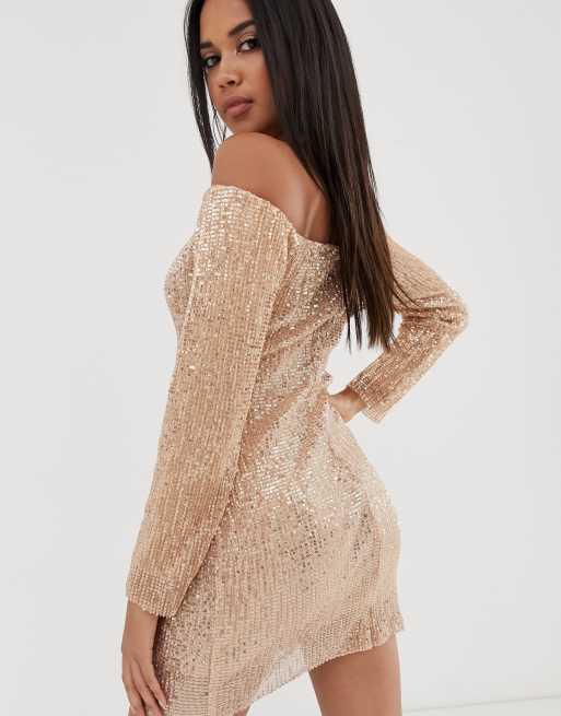 Kiss Me Slowly Off Shoulder Dress Rose Gold Fashion Nova