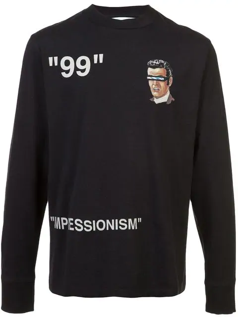 Printed Cotton Jersey T Shirt In Black Business Casual Men Long