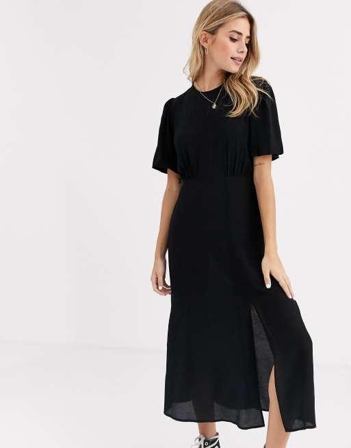 Plain Design Mini Ultimate Cotton Smock Dress Black Jersey Crew