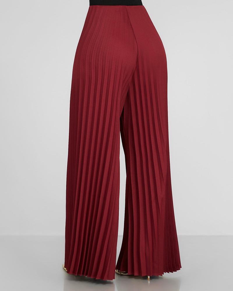 Solid Pleated Wide Leg Casual Pants