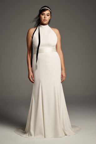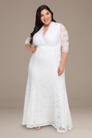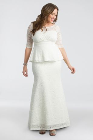 Davids bridal has beautiful plus size wedding dresses that come in a variety of sizes full figured styles for an affordable price. From sleek sheaths to ultra feminine a line silhouettes discover the perfect design to help make your big day unforgettable. Flutter sleeve satin plus size dress with ruffle. All mens shoes athletic sneakers casual loafers dress shoes all kids baby shoes.