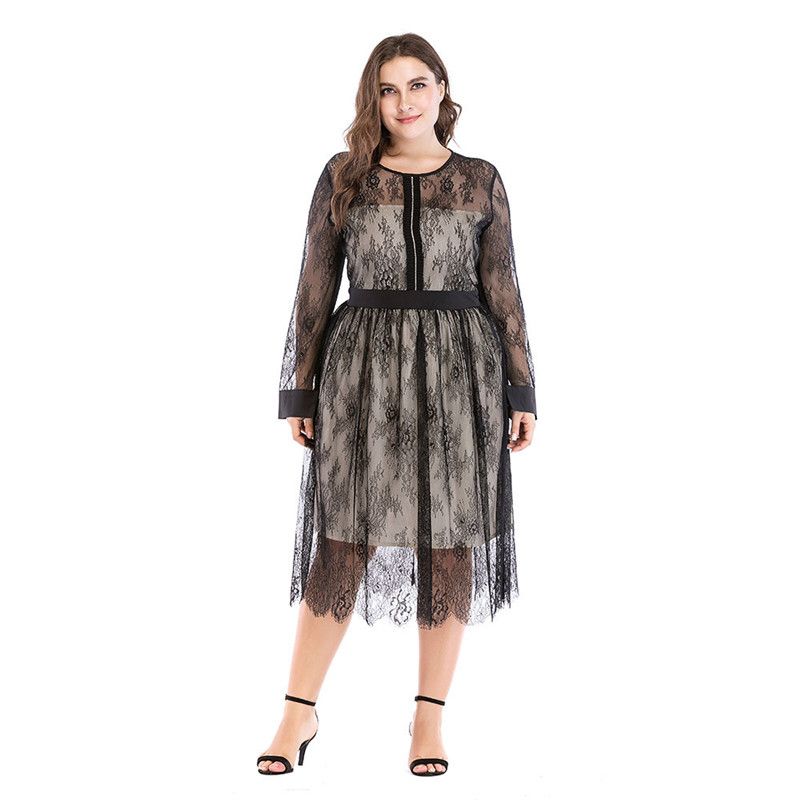 Nextmia Plus Size Dress Ladder Cut Capelet Casual Dresses For
