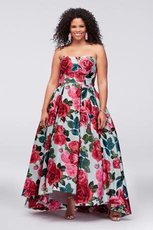 Plus Size Strapless Chevron Asymmetric Hi Low Summer Party Dresses