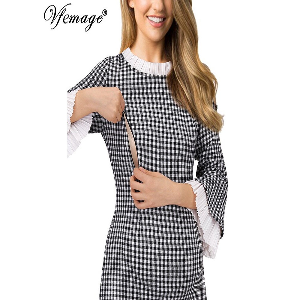 Vfemage Womens Mama Maternity Nursing Tiered Bell Sleeves Pregnant