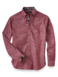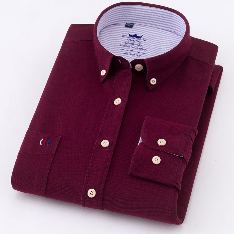 Long Sleeve Shirt Red Asymmetrical Design Slim Fit Cotton Shirt