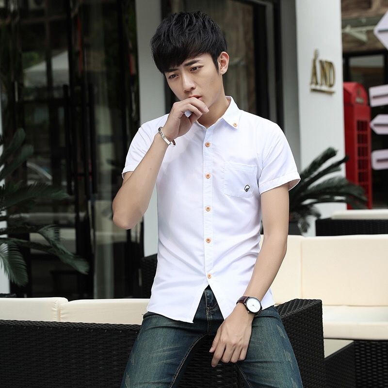 Men Korean Tops Blouses Printing Slim Fit Half Sleeve Youth Summer