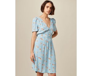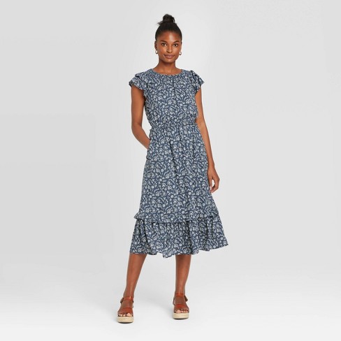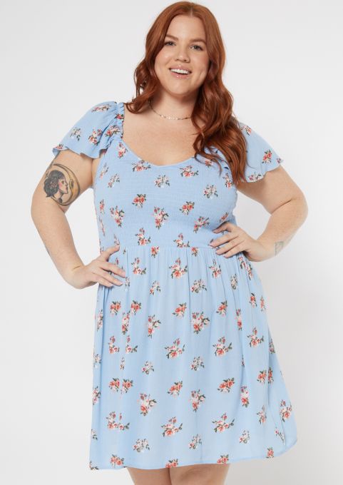 Dusty Blue Floral Short Dress With Ruffles Short Dresses Saved