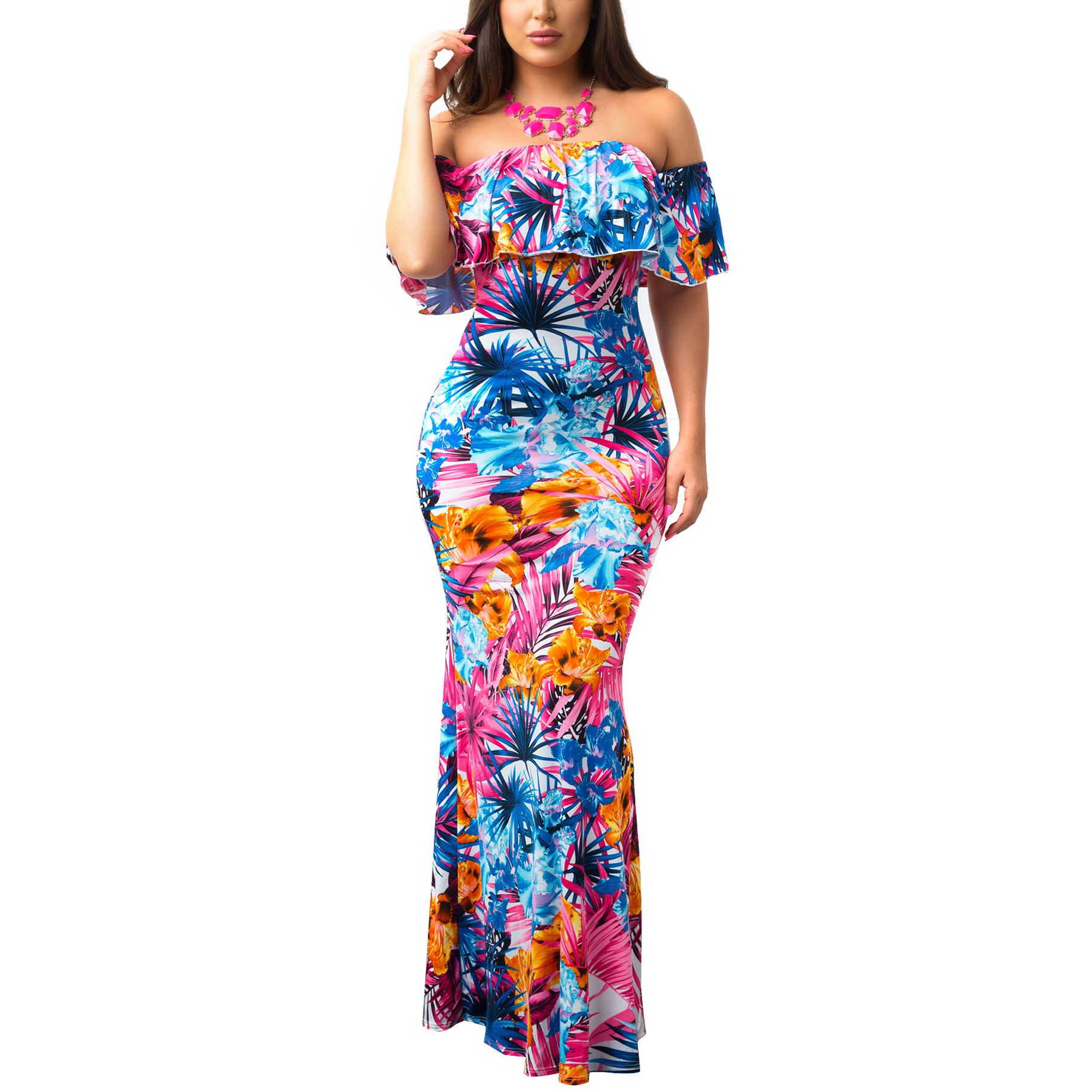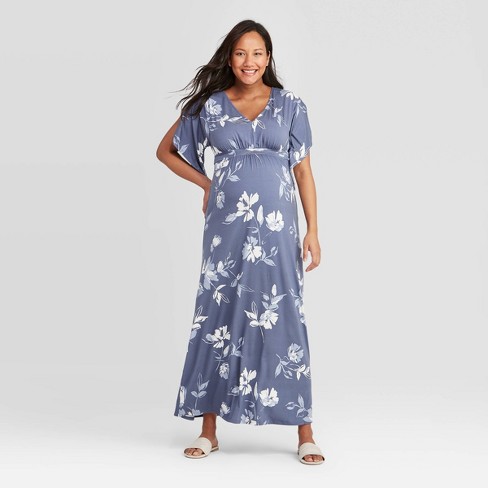 Pocket Design Short Sleeve Light Blue Floral Maxi Dress Zekela Com