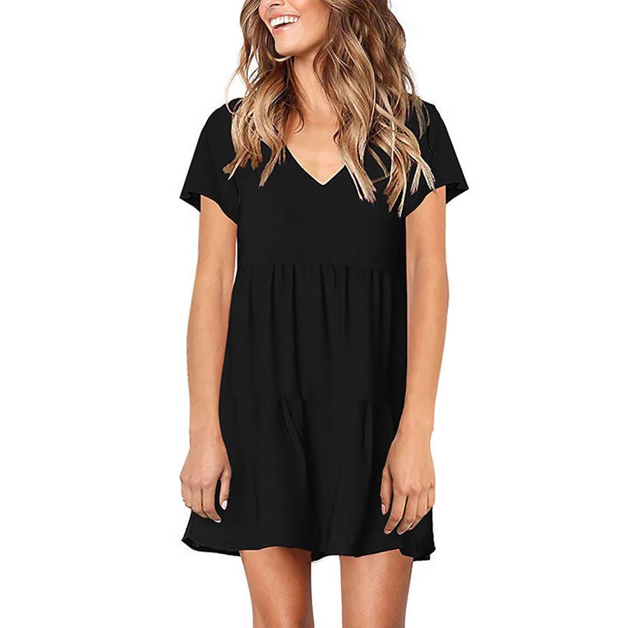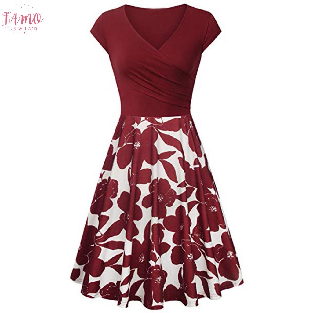 Women Casual Dresses Lady Boho Short Sleeve V Neck Long Maxi Dress