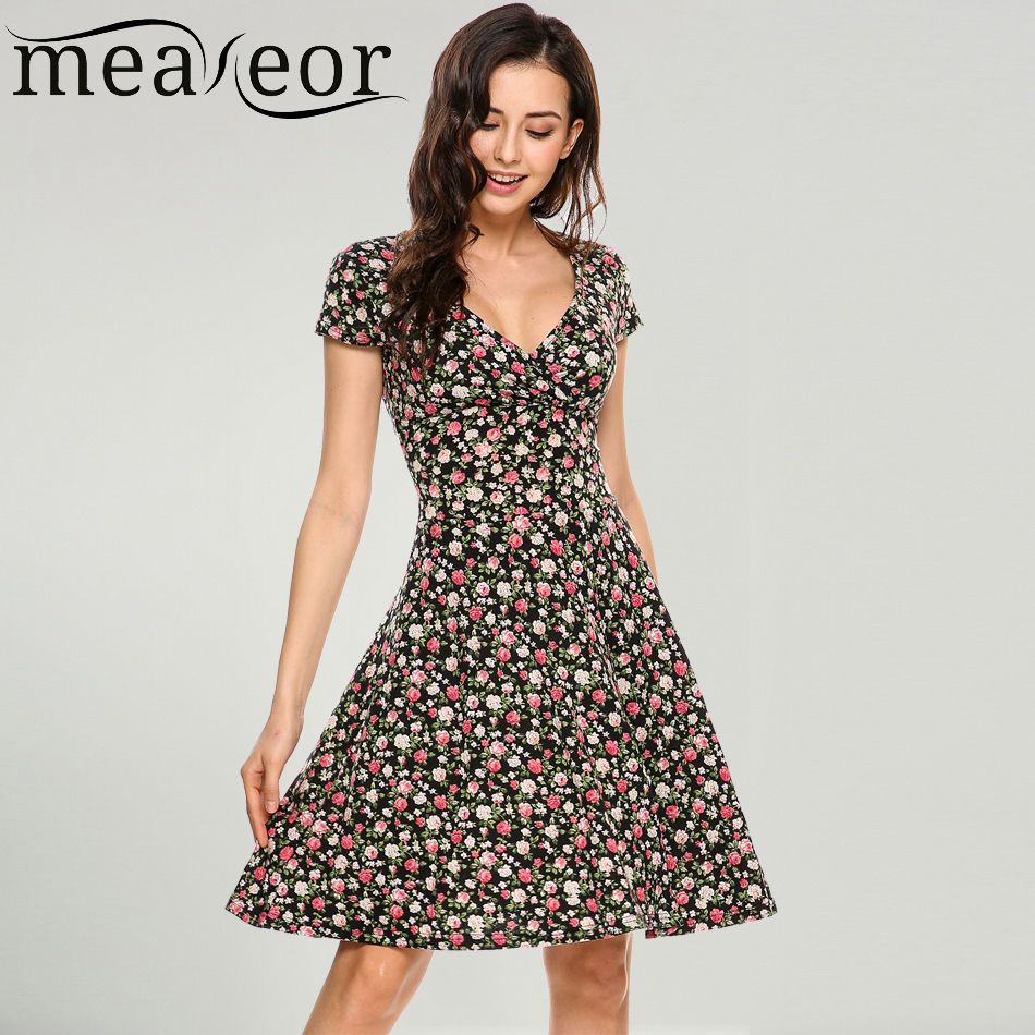 New Fashion Summer Dress Short Sleeve V Neck Casual Polka Dot