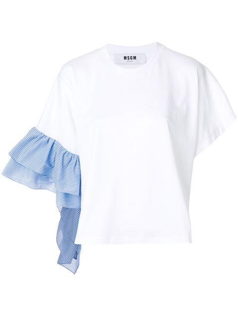 Cecepocket Leisure Printed Patchwork Asymmetrical White Blouse