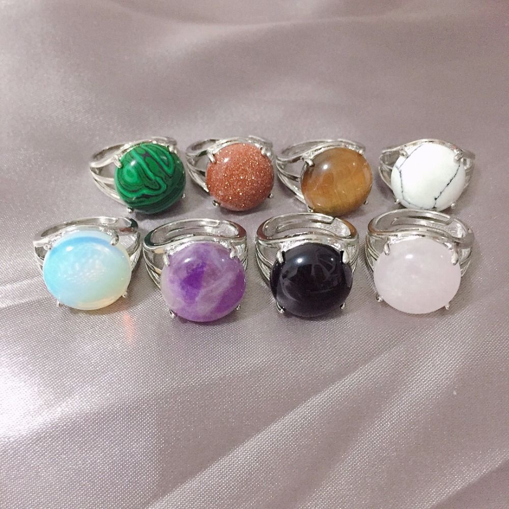 2020 Silver Color Simple Full Ring For Women Natural Stone Casual
