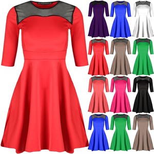 Skater Long Sleeves Mesh Panel Flare Casual Dress Cute Dresses