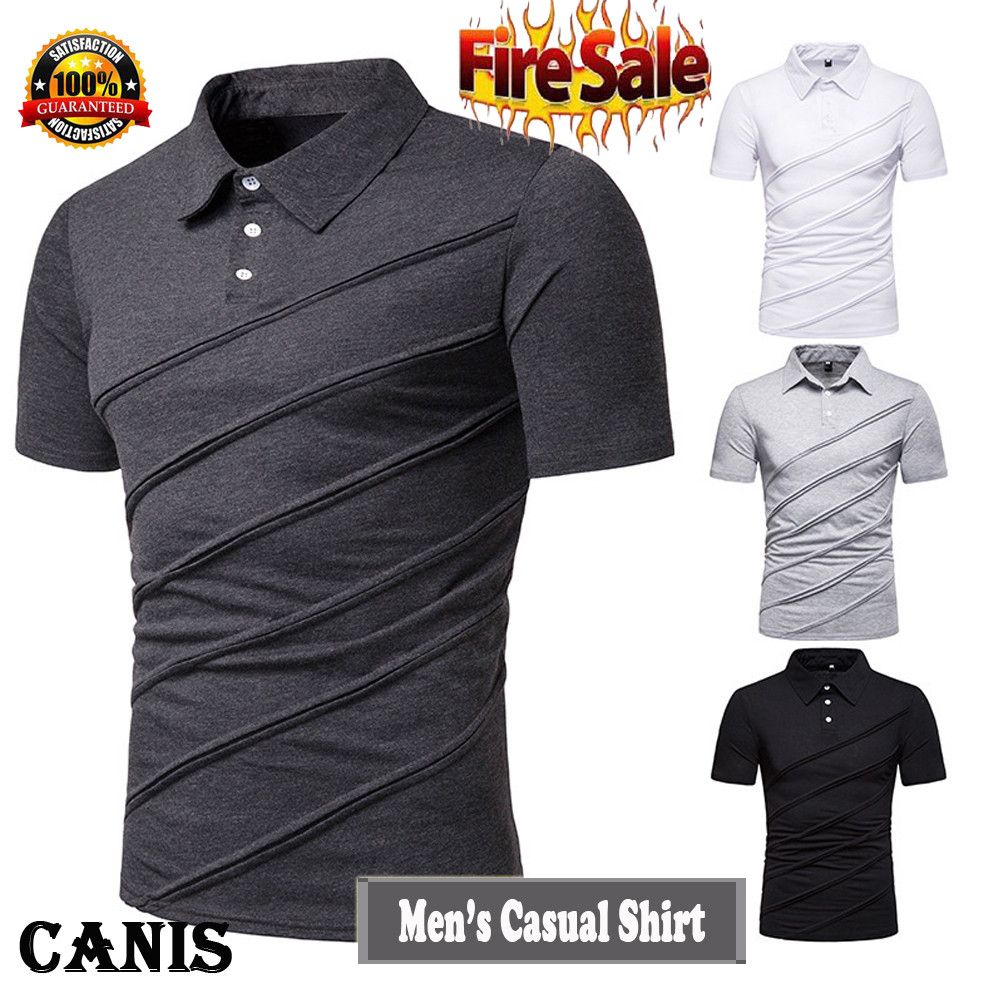 Shop New Men Short Sleeve Button Down T Shirt Top Slim Fit Casual