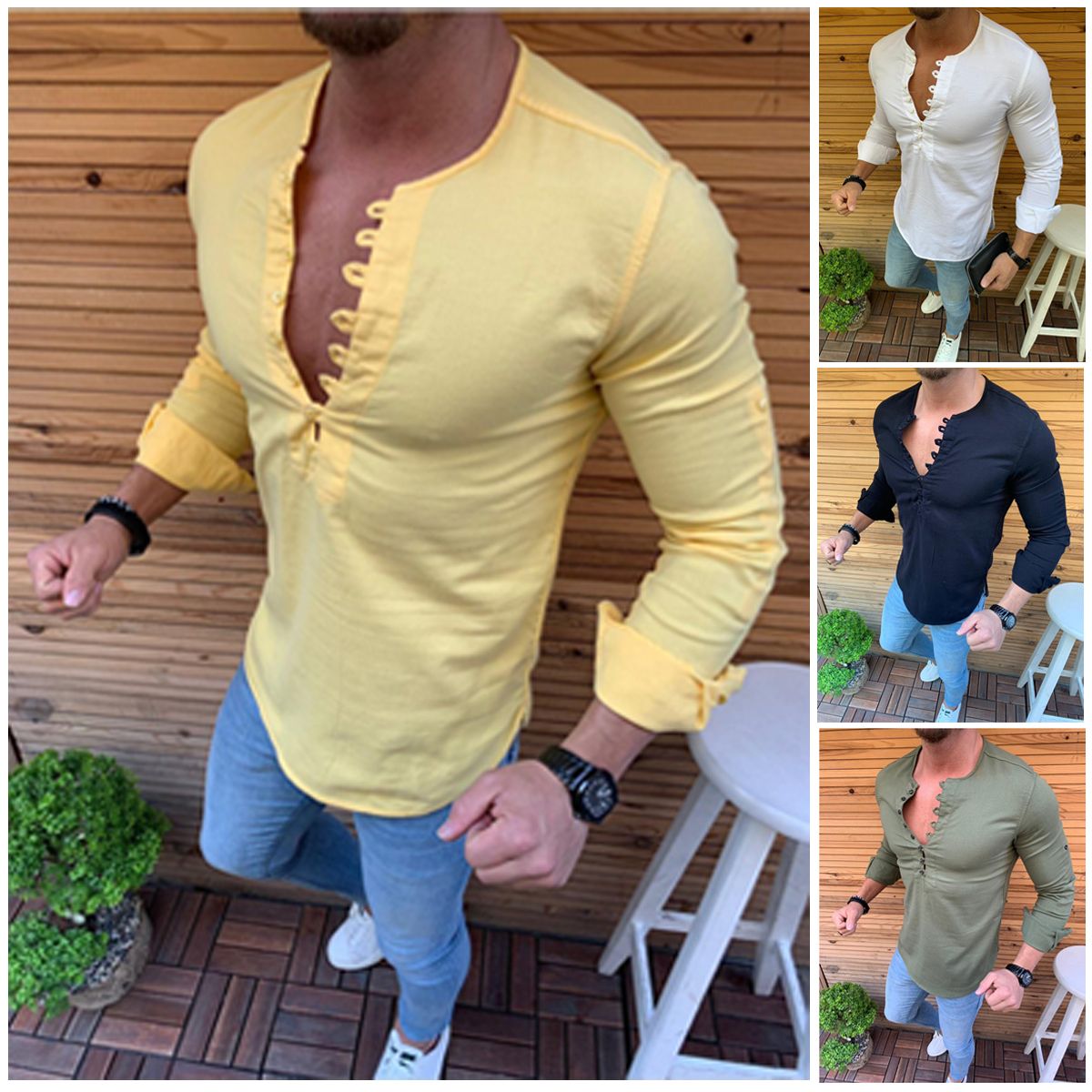 Shop Men Shirt Long Sleeve Slim Fit Stripe Lapel Button Top Men