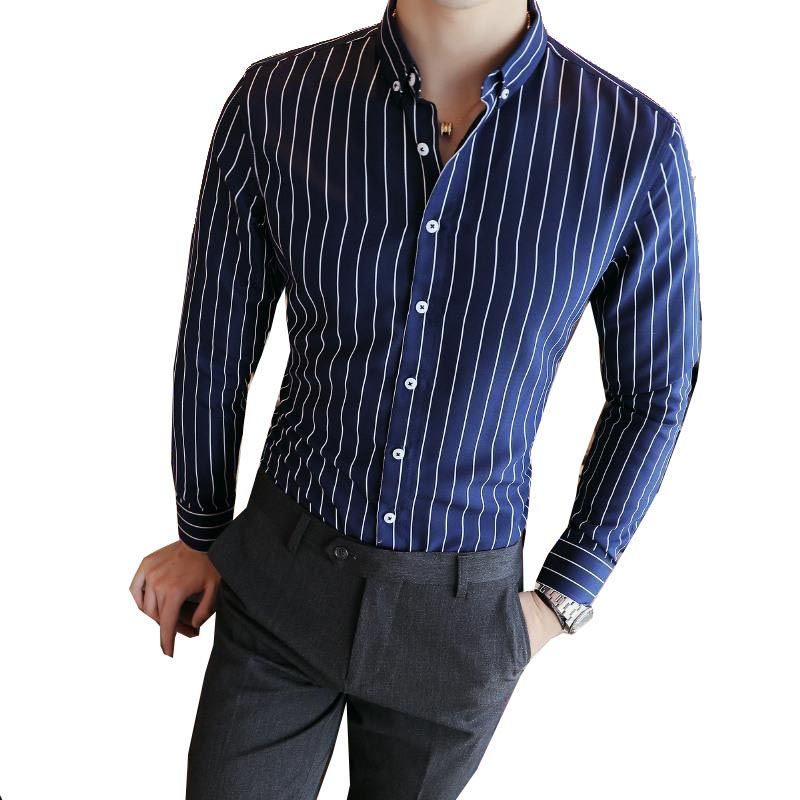2020 Mens Double Collar Inner Contrast Dress Shirts Comfortable